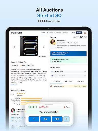 Choosing DealDash - Bid & Save Auctions offers several advantages over other auction platforms. One key benefit is the real-time interaction users experience while placing bids, which creates an engaging app experience. Additionally, the variety of products available ensures that users can find items that suit their needs and preferences, making it a comprehensive shopping solution.