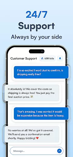 This app solves common issues faced by online shoppers, such as lack of transparency in auction processes. By providing clear information about bids and timely notifications, it empowers users to make informed decisions. Furthermore, its focus on security and customer support sets it apart from competitors, establishing trust and reliability in every transaction.