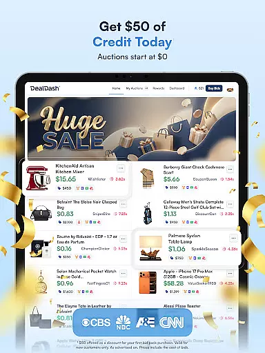 DealDash - Bid & Save Auctions is a mobile app designed to provide users with an engaging auction experience. This Android app allows users to participate in online auctions where they can bid on a variety of products. The app's interface is crafted to make the bidding process intuitive and enjoyable, ensuring that users can easily navigate through ongoing auctions and discover new ones.