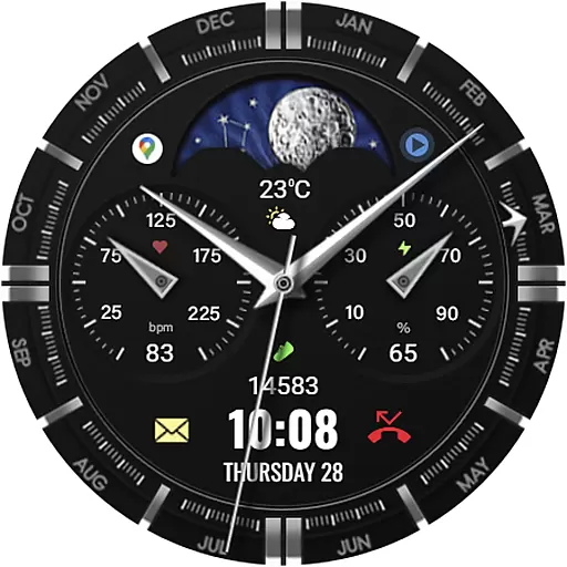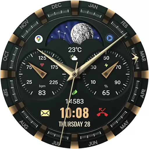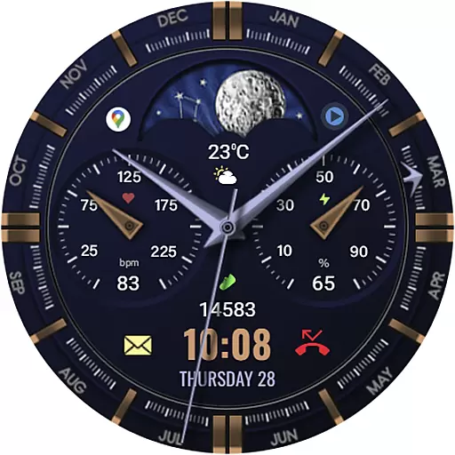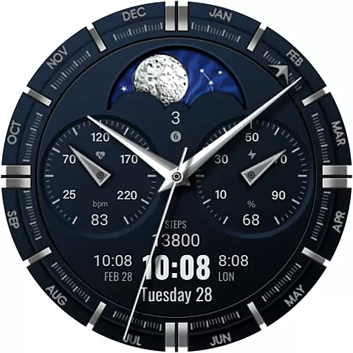 The primary purpose of this app is to provide an enhanced app experience by offering a customizable and visually pleasing interface for smartwatch users. With its sleek design and attention to detail, it caters to those who value both form and function in their wearable devices. The app features include customizable elements, allowing users to tailor the watch face to their preferences.